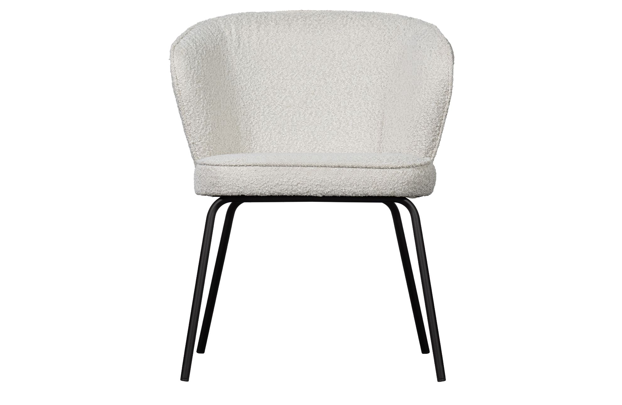 Luksuzen jedilni stol je oblazinjen v Bouclé (100% poliester) ter se ponaša s kovinskim podnožjem,