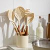 To bež cedilo je popolna kombinacija funkcionalnosti in elegantnega dizajna. Izdelano iz trpežnega materiala, ima lesene ročaje, ki zagotavljajo dober oprijem in dodajajo pridih naravne topline. Cedilo je idealno za odcejanje testenin, zelenjave ali solate, njegova nevtralna barva pa se brez težav poda v vsako kuhinjo.