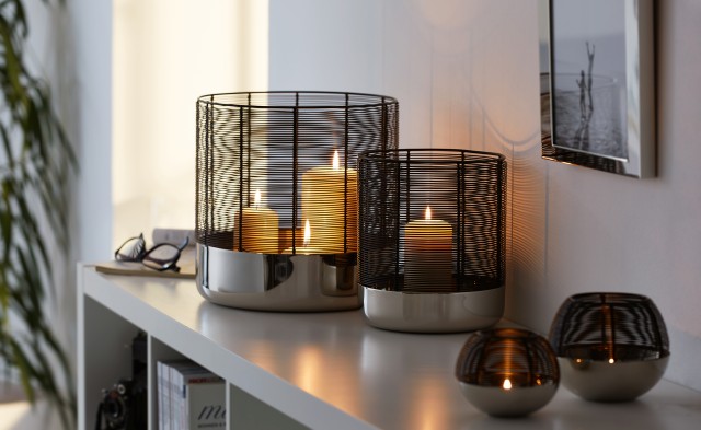 Eleganten svečnik velikosti M je izdelan iz ročno pletene jeklene žice in primeren za čajne svečke.