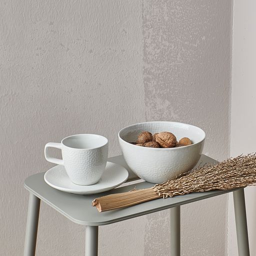 MIELO se od drugih kolekcij razlikuje po značilnem čudovitem strukturiranem vzorcu. Kovan vzorec in sijajni zaključek na notranji in zunanji strani zagotavljata edinstveno izkušnjo. Skodelice, sklede in krožnike v dveh barvah kombinirajte po mili volji. Prav tako pa čudovito izgledajo tudi v kombinaciji z nestrukturiranimi krožniki in skledicami, da se poigravajo oblike in teksture.